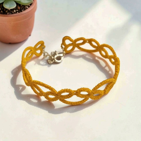Delikatna haftowana bransoletka w kolorze żółtym. Bransoletka a'la łańcuszek.