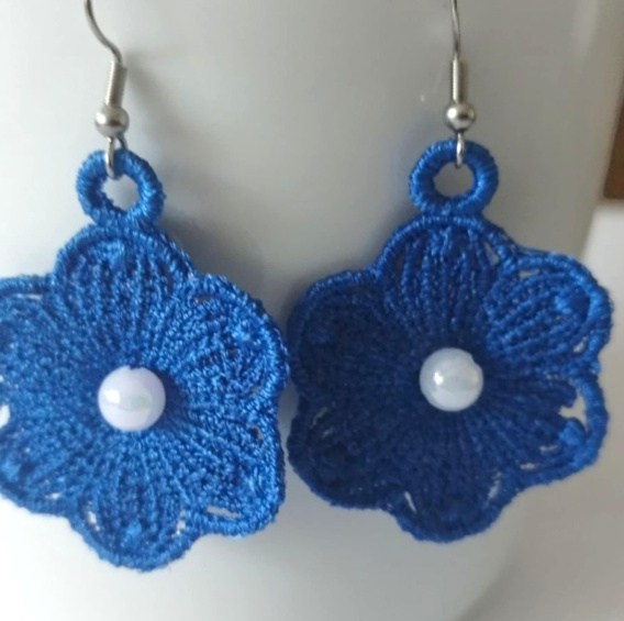 Kolczyki są haftowane (haft maszynowy).  Haft jest gęsty, dobrze utrzymuje kształt i wygląd kolczyków.  Haftowane kolczyki też są lekkie - to ich kolejny atut. Do kolczyków można dokupić pasujący naszyjnik widoczny na  zdjęciu