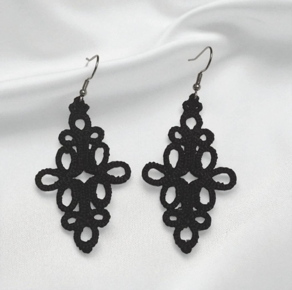 Czarne kolczyki z koronkowym haftem są delikatne i bardzo oryginalne. Z pewnością spodobają się kobietom ceniącym indywidualność oraz modne i nietuzinkowe stylizacje.