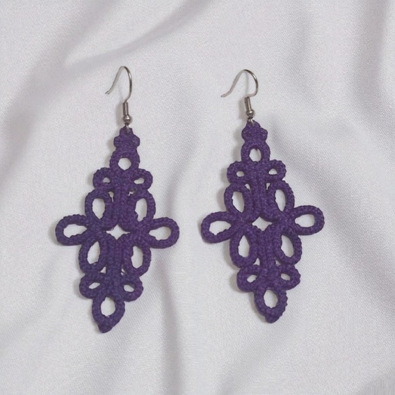 Fioletowe kolczyki z koronkowym haftem  są delikatne i bardzo oryginalne.  Z pewnością spodobają się  kobietom ceniącym indywidualność oraz  modne i nietuzinkowe  stylizacje.